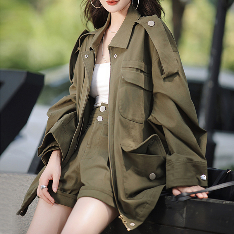 Summer two-piece sunscreen shirt elastic waist shorts set