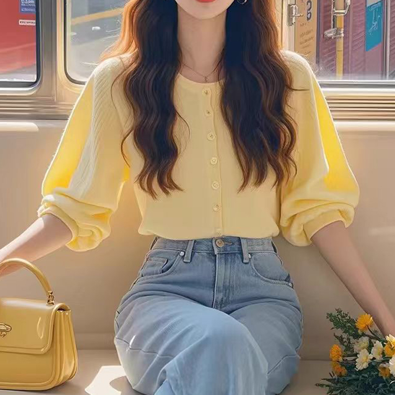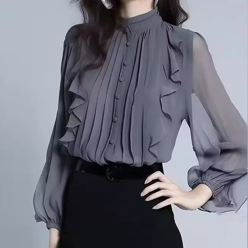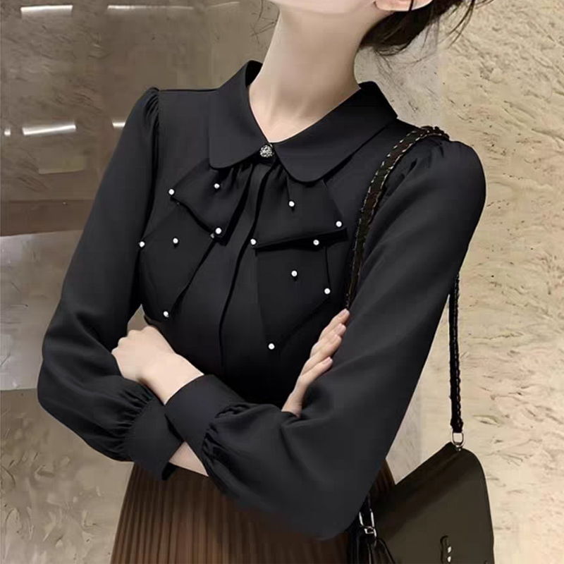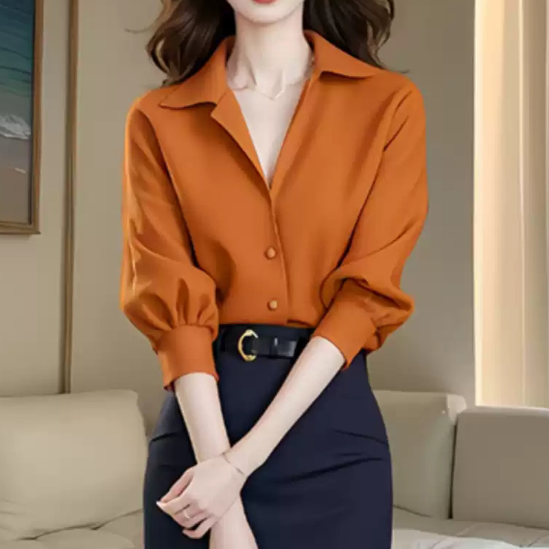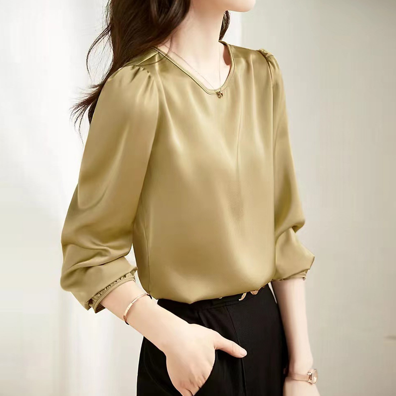 Commuting pure color pullover temperament new early autumn sleeve blouse