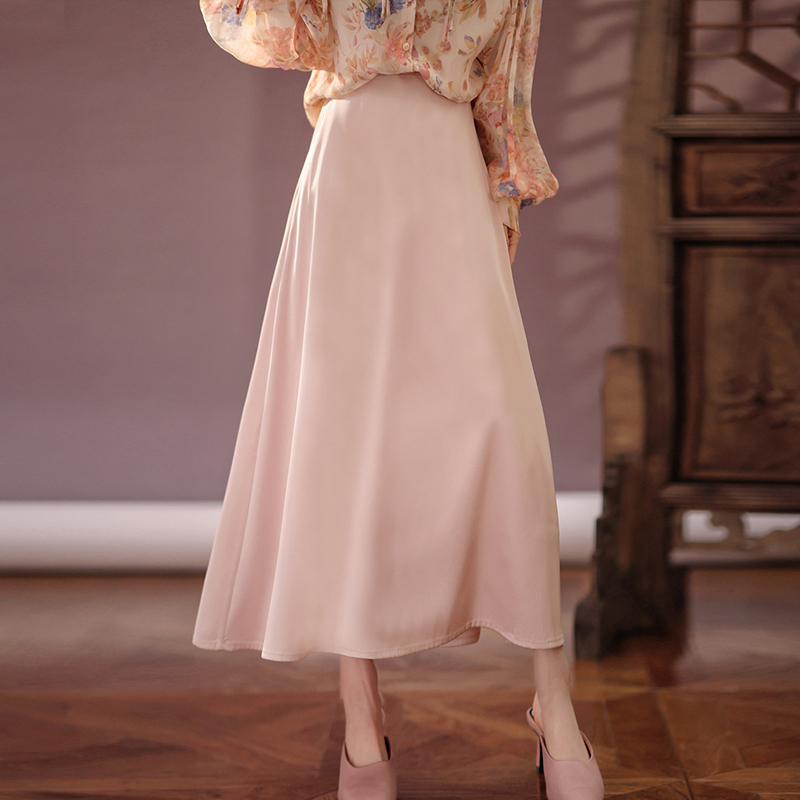 Micro-wrinkled mid-length A-line skirt summer skirt