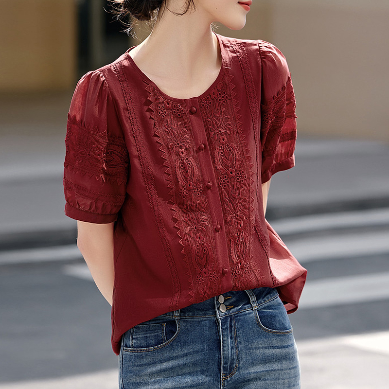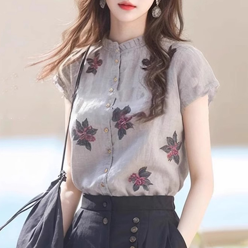 French asymmetrical design apricot new short-sleeved women's summer shirt