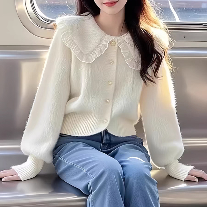 Winter gentle lace lace small V-neck pullover sleeves women's sweater