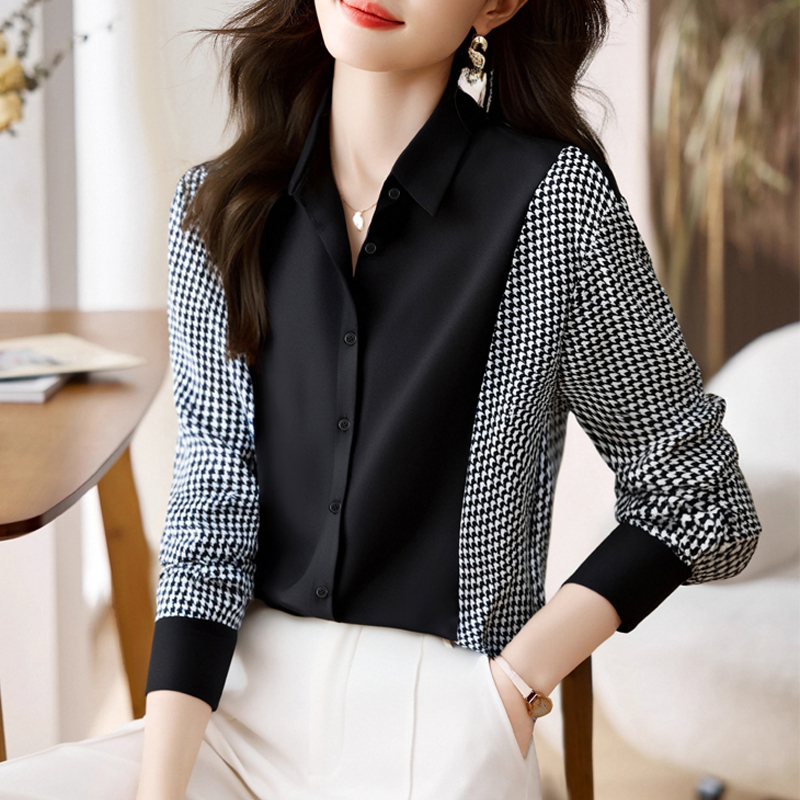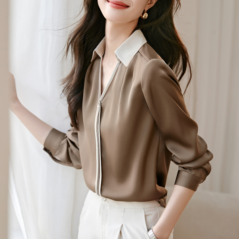 Contrast-matching matching new commuting spring and autumn sleeve blouse