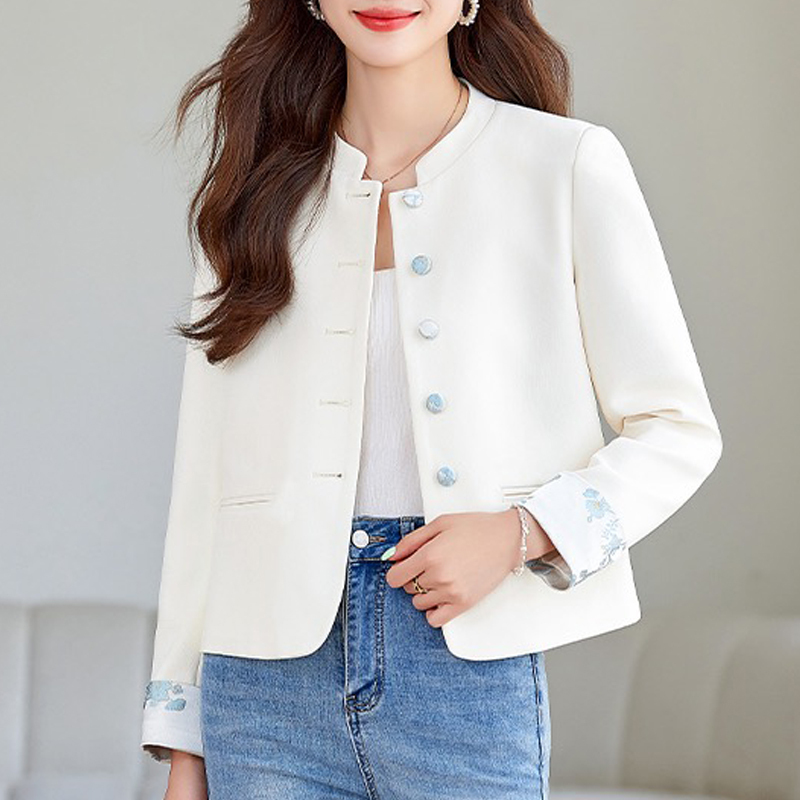 Retro single-breasted temperament new pure color sleeve women's top coat