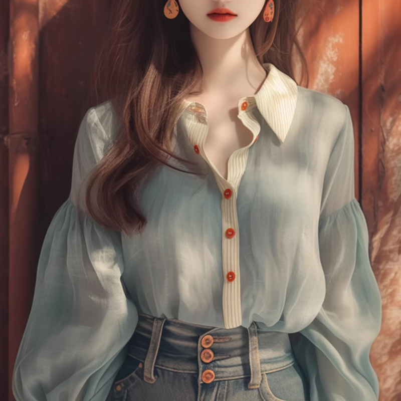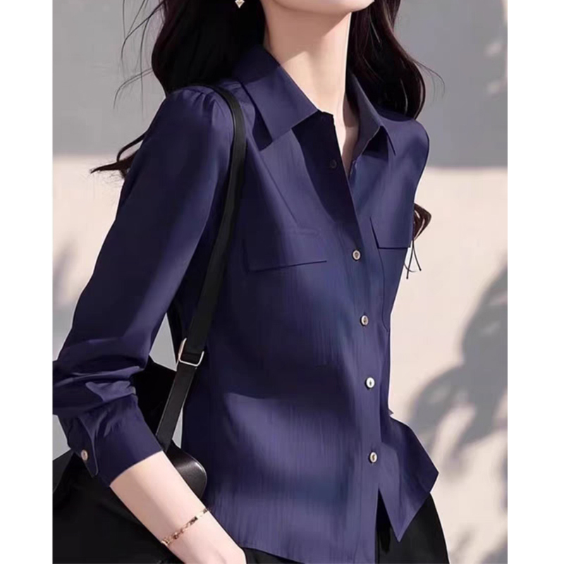 Temperament commuting new blue slimming and luxurious sleeve women's shirt