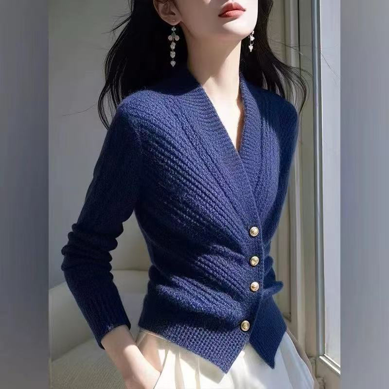 Temperament waist, short and slimming autumn and winter sleeves, women's knitted cardigan top