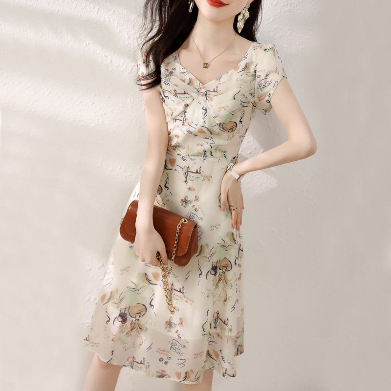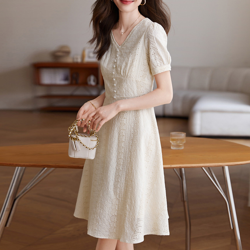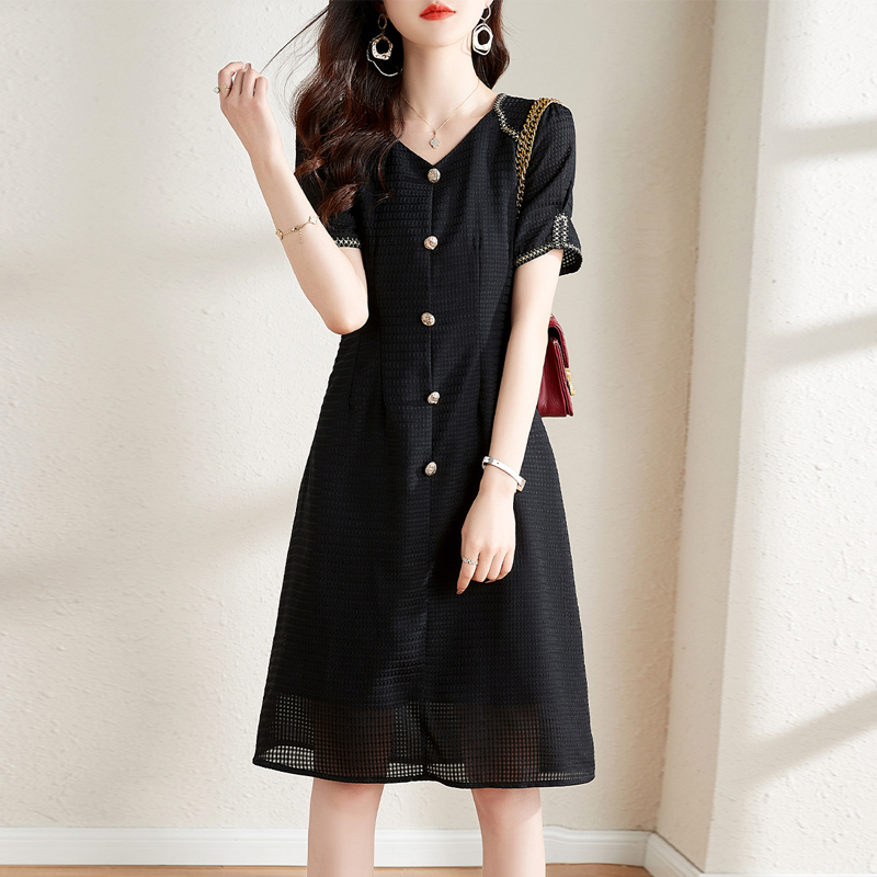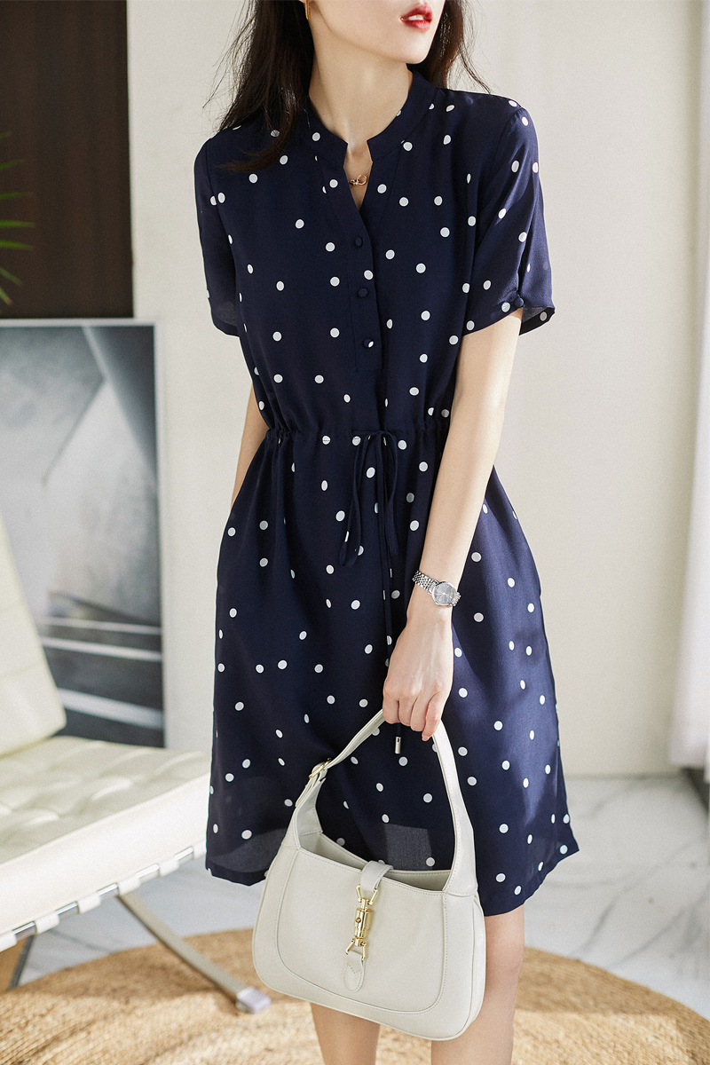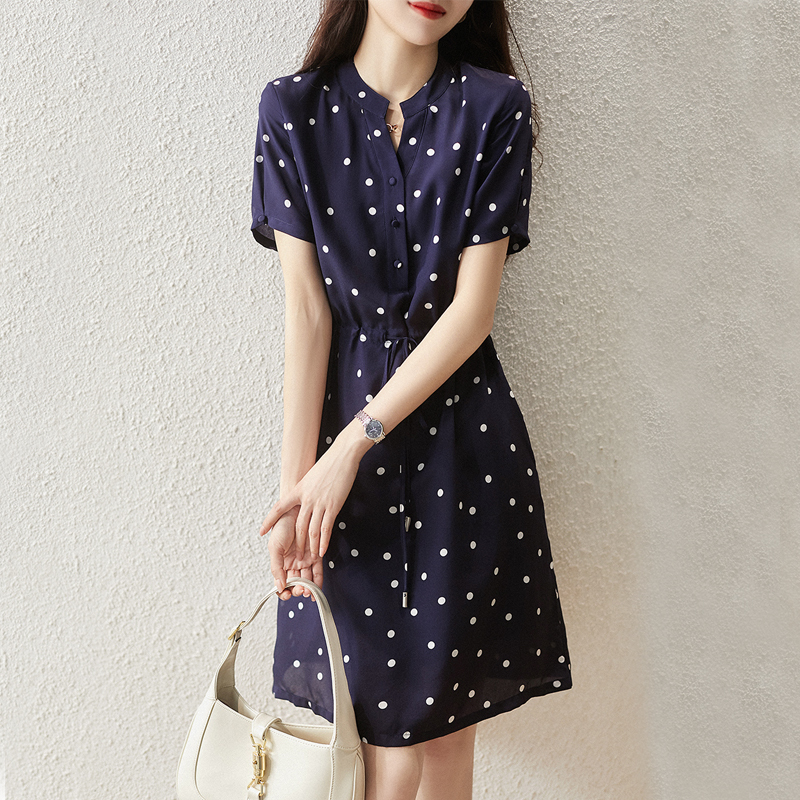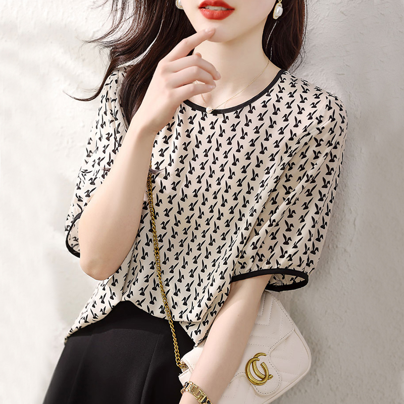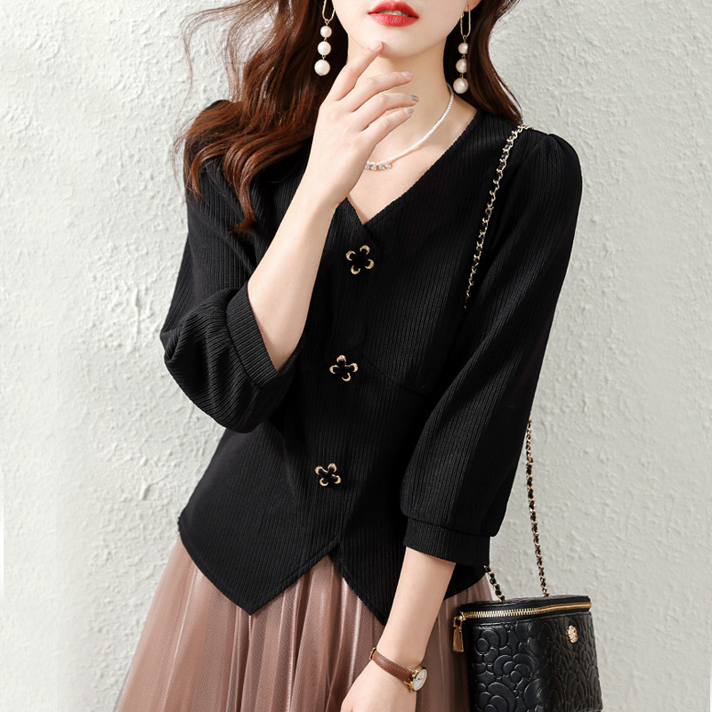 The new style temperament takes in the waist and the fragrant style girl's seven-minute sleeve shirt.