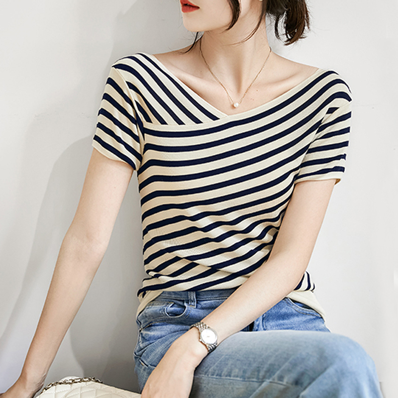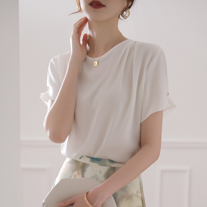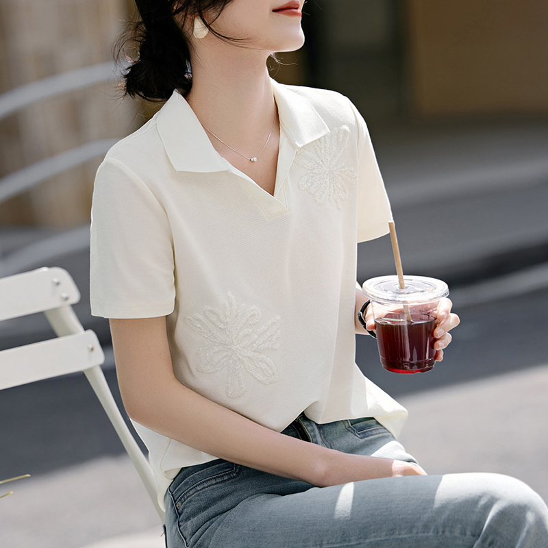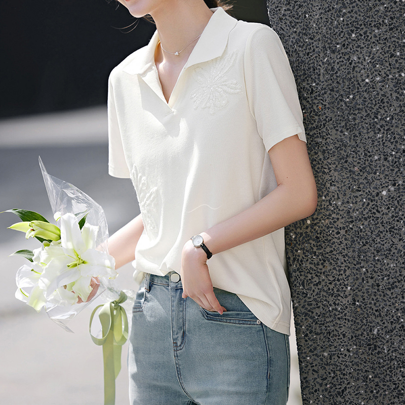 Elegant heavy industry beaded embroidered short-sleeved women's T-shirt