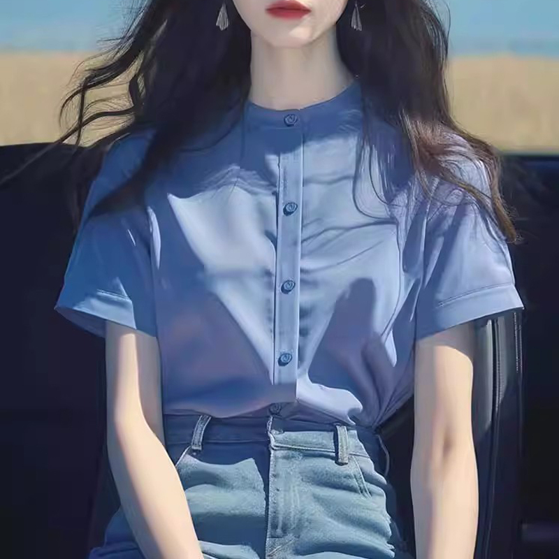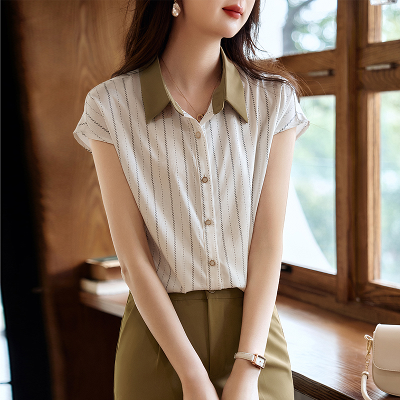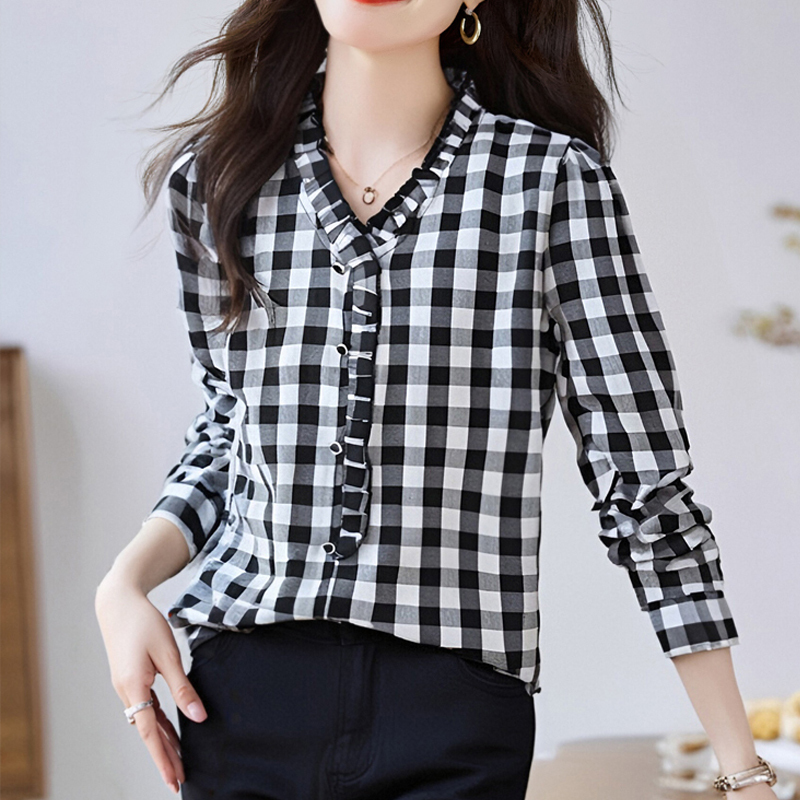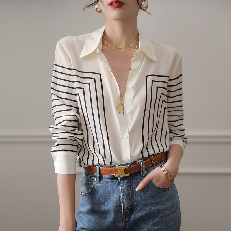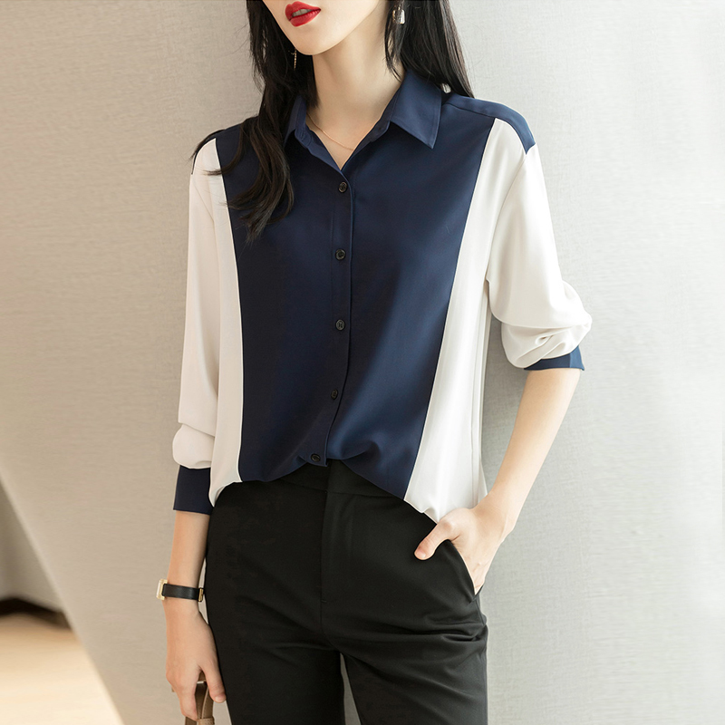 Long-sleeved lady's shirt with a sense of design and color temperament