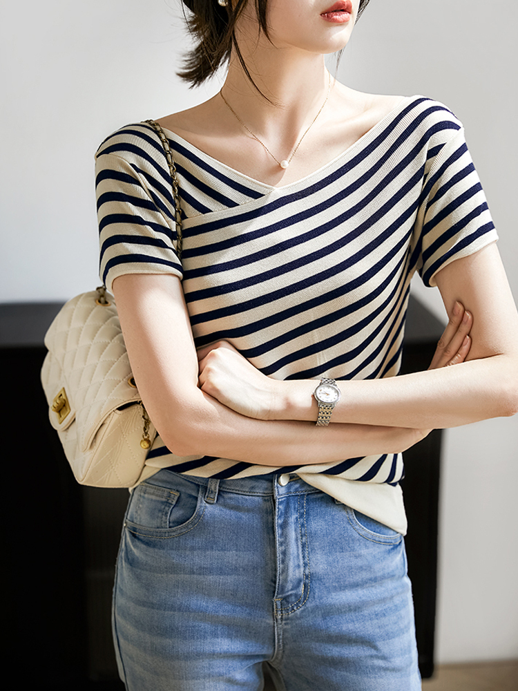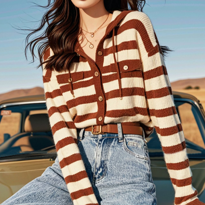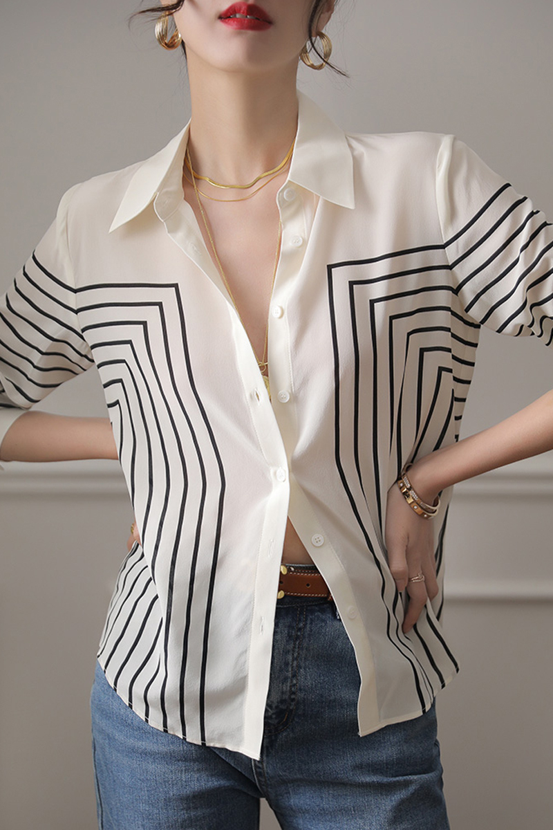 Design symmetrical geometric striped long-sleeved lady's shirt
