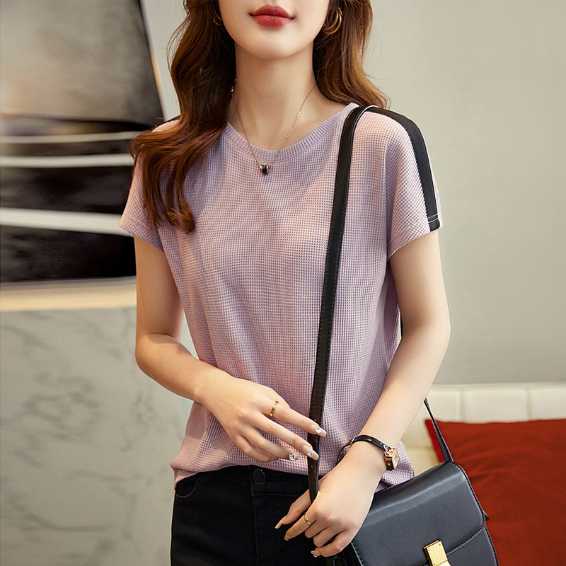 Color contrast taro purple high-grade short-sleeved women's T-shirt