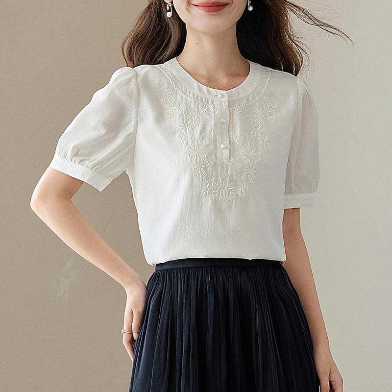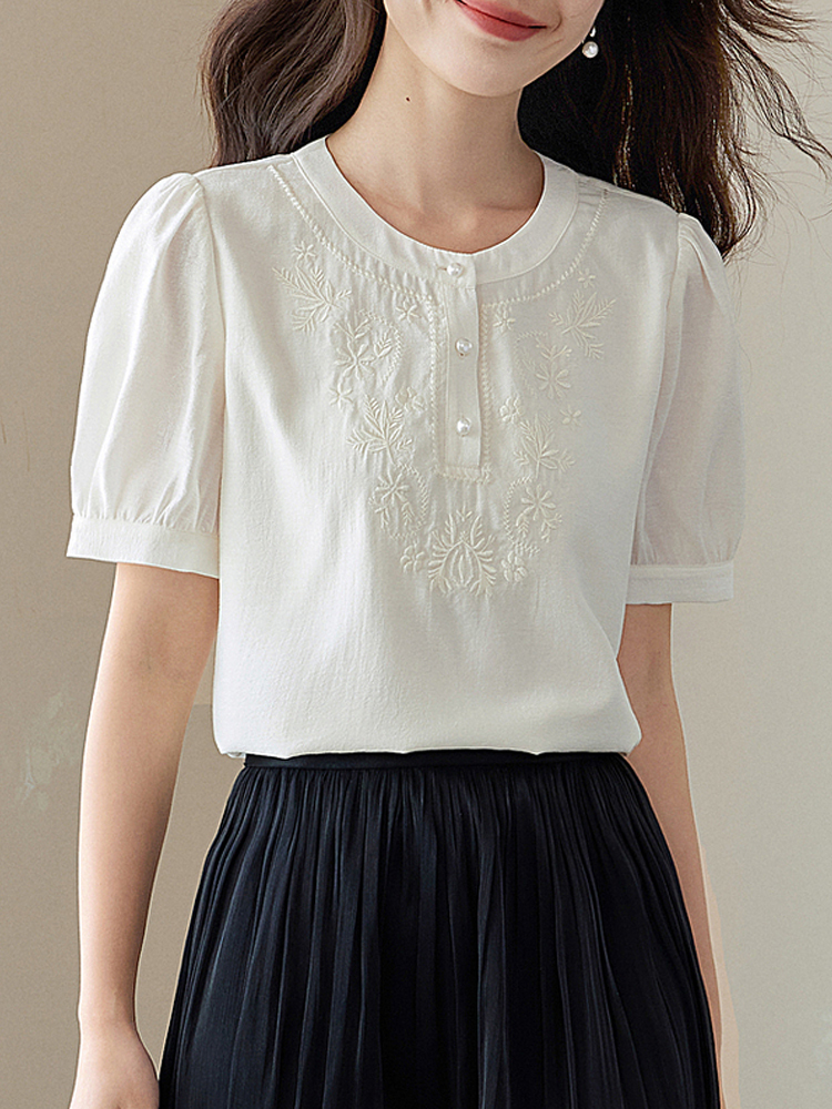Light retro vine embroidered pullover blouse top