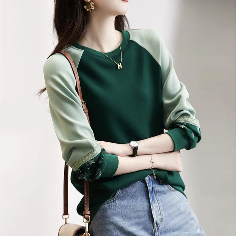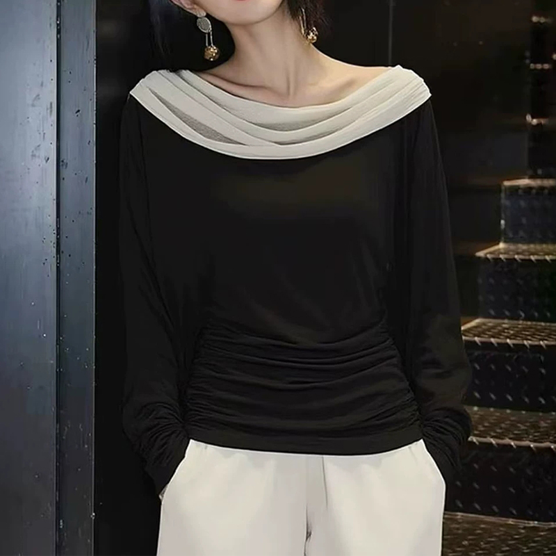 French high-quality women's shirt with contrasting color swing collar design pullover sleeves