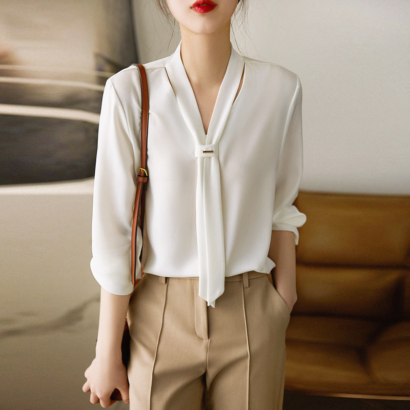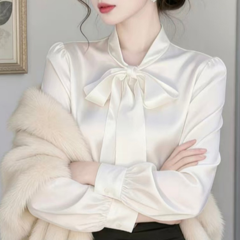 French elegant bow new style light luxury white sleeve women's shirt
