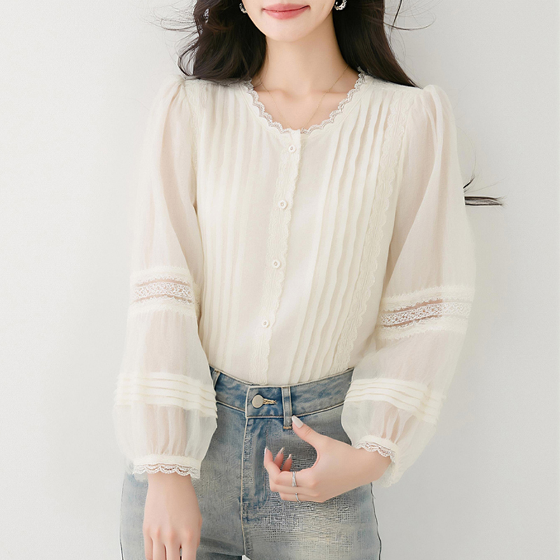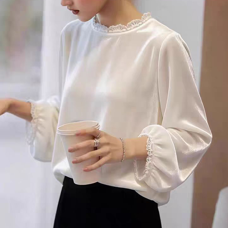 Elegant lace stitching pullover white new spring blouse