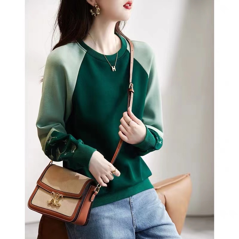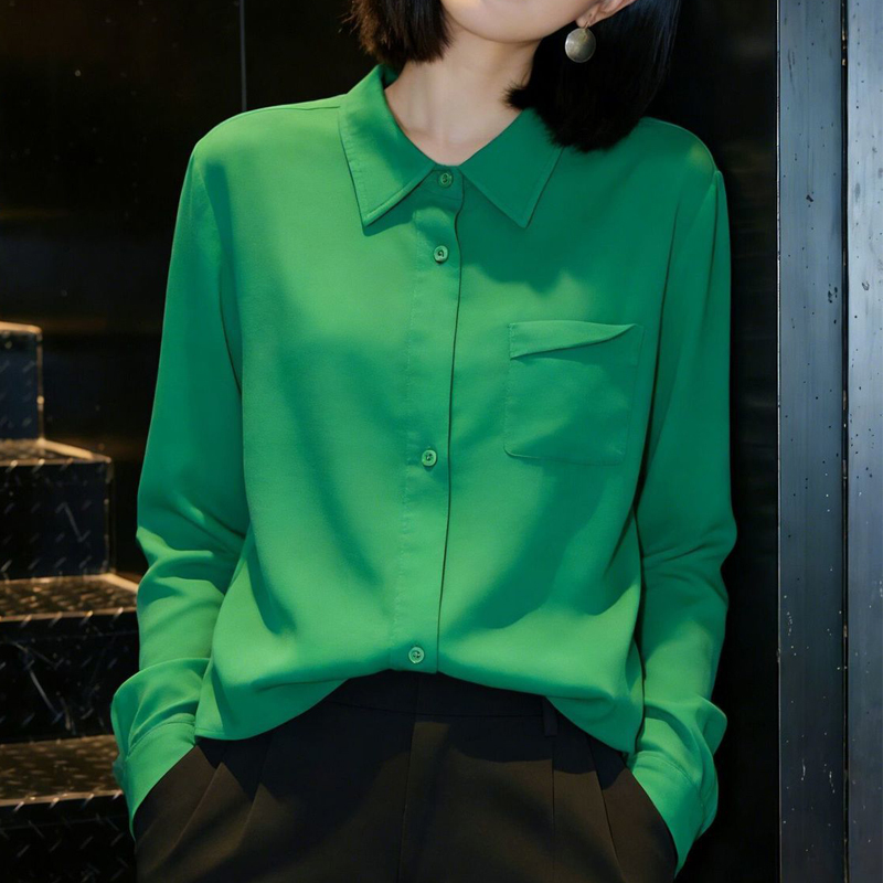 Design sticker bag, green lapel, new sleeves, spring blouse