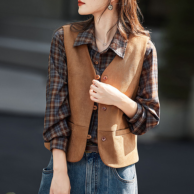 Coffee color new light luxury retro vest top sleeveless coat