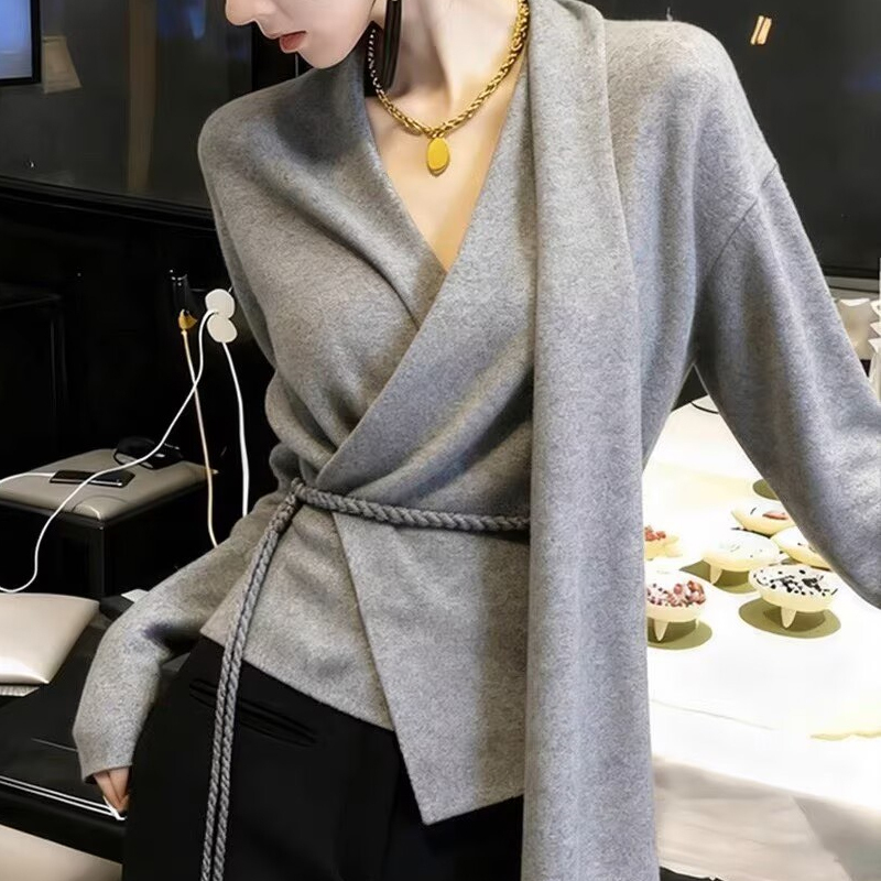 Autumn and winter new all-matching casual high-end white sweater and blouse