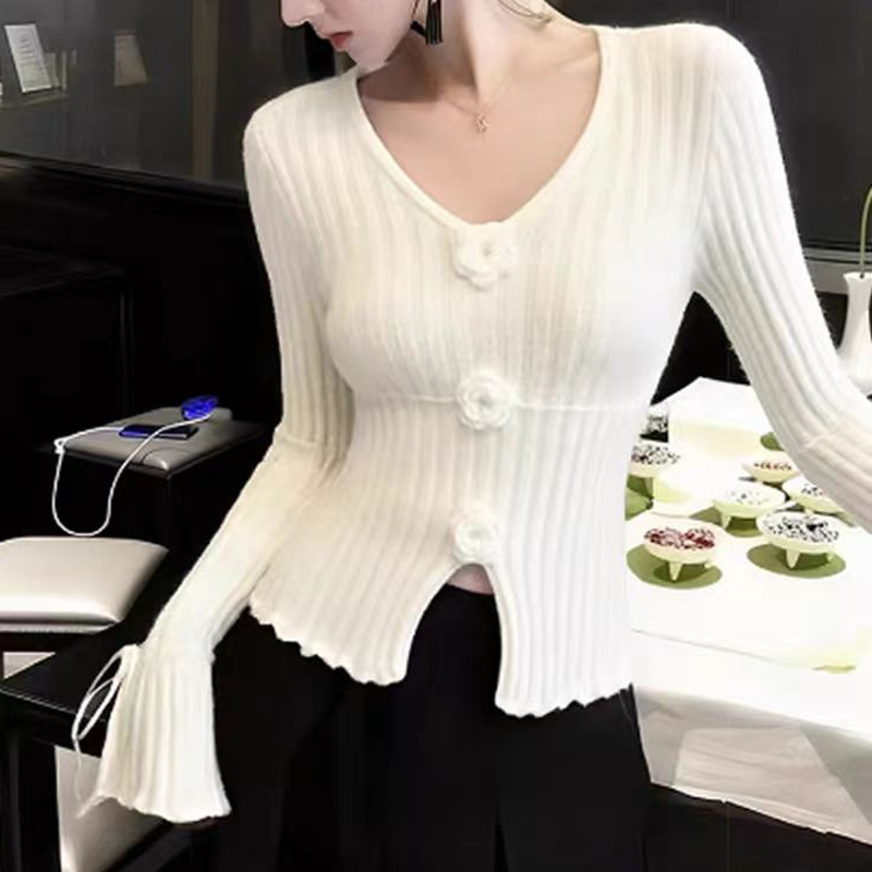Design V-neck, split slightly sleeve pullover white sleeve sweater