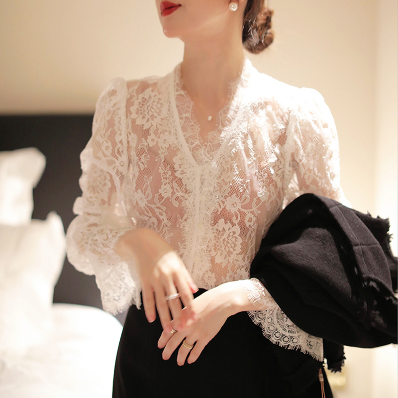 Feminine fish bone perspective lace shirt