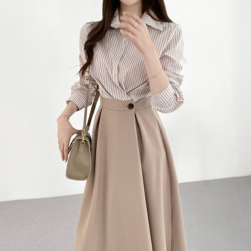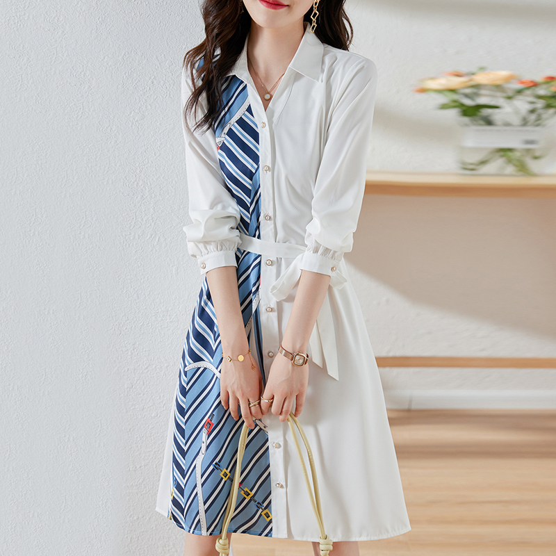 New style single-breasted purple shirt skirt sleeve dress