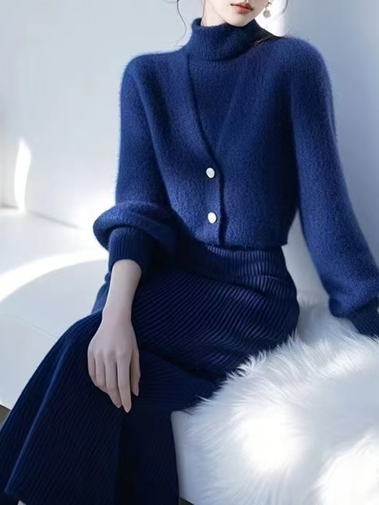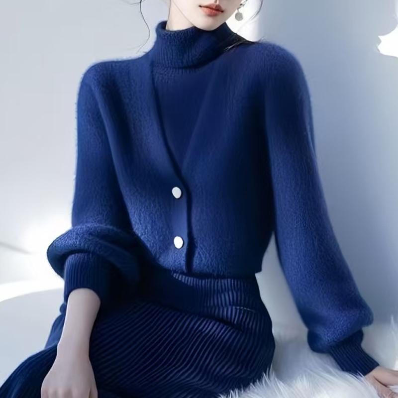 French commuter dark blue autumn and winter women's sweater top