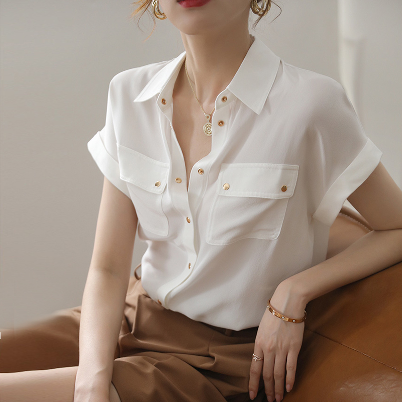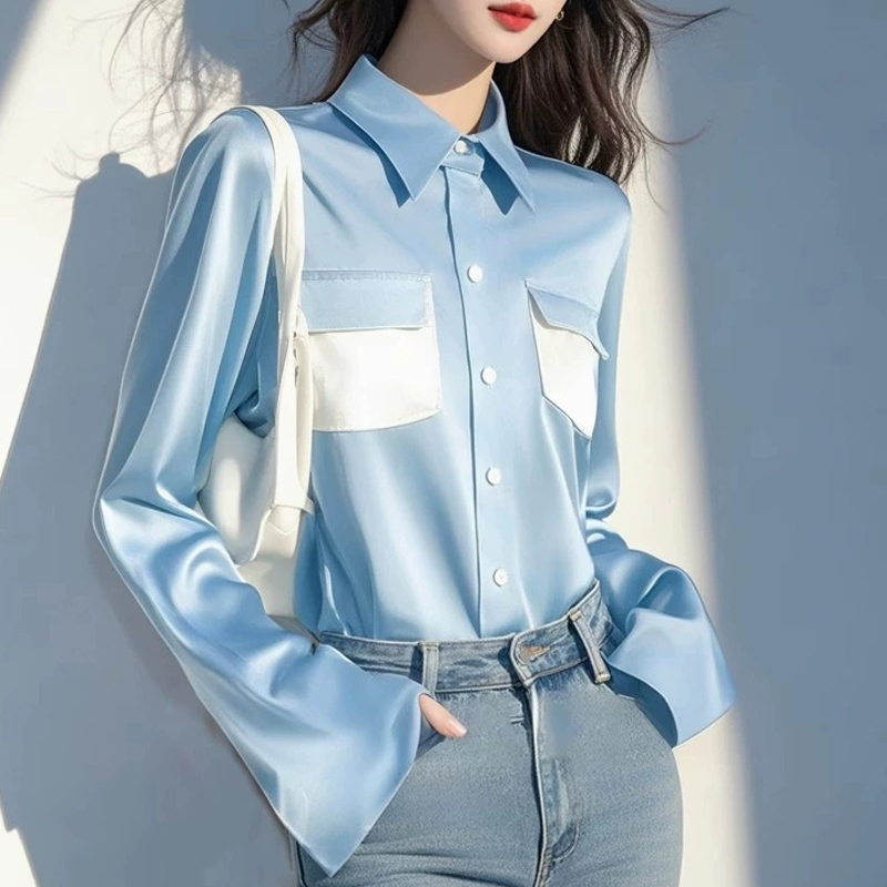 Elegant contrasting lapels, new style women's shirt with sleeves