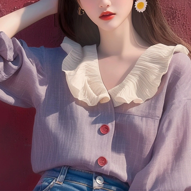 Age-reducing color contrast baby collar purple new blouse