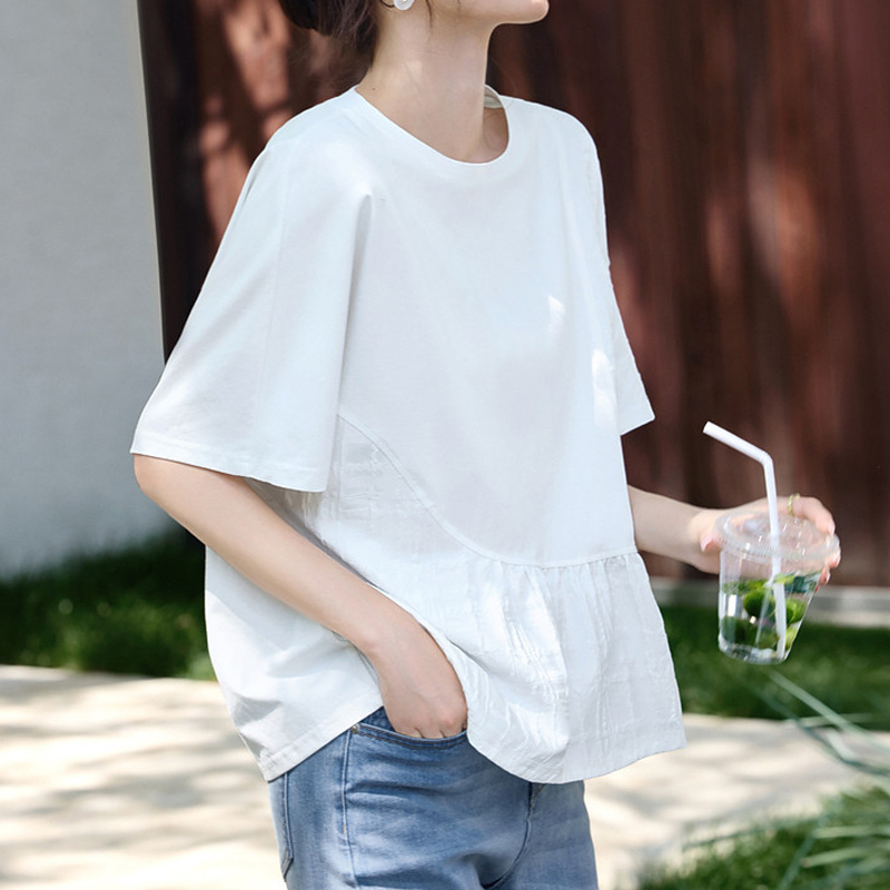 Texture design stitching asymmetrical loose pullover blouse