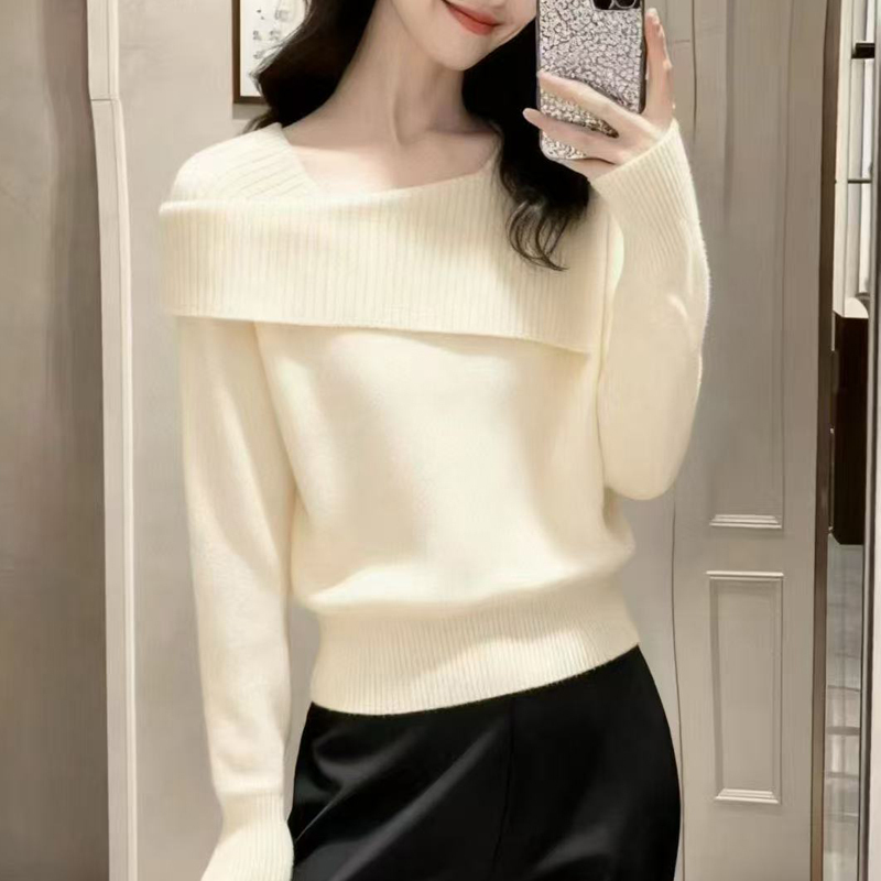 Asymmetrical design, one-collar pullover, elegant sleeve sweater