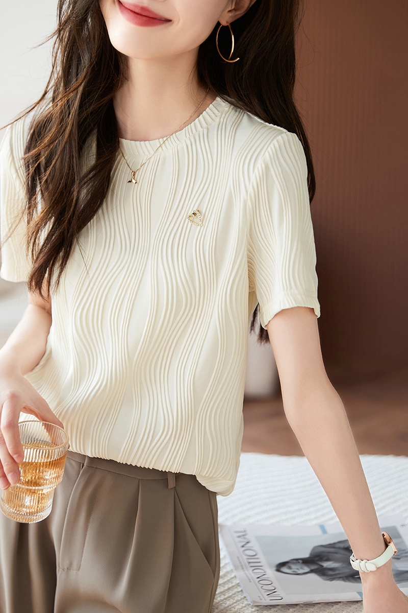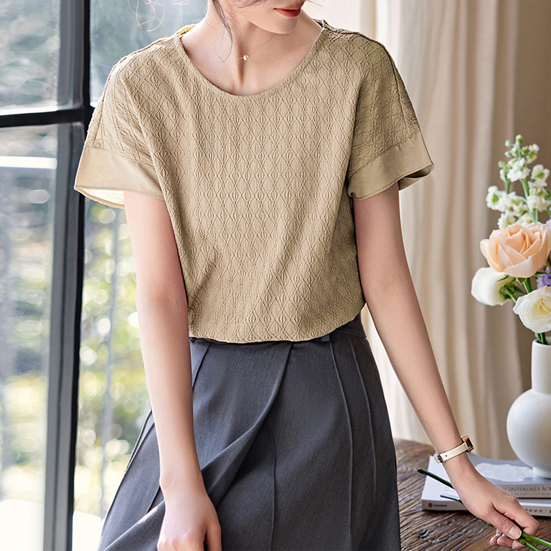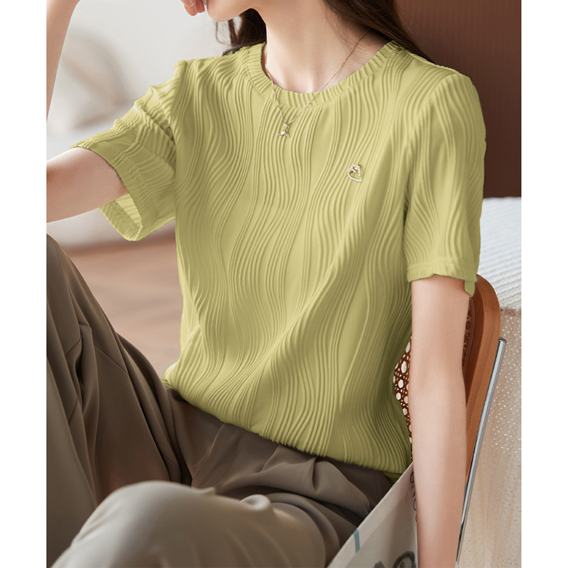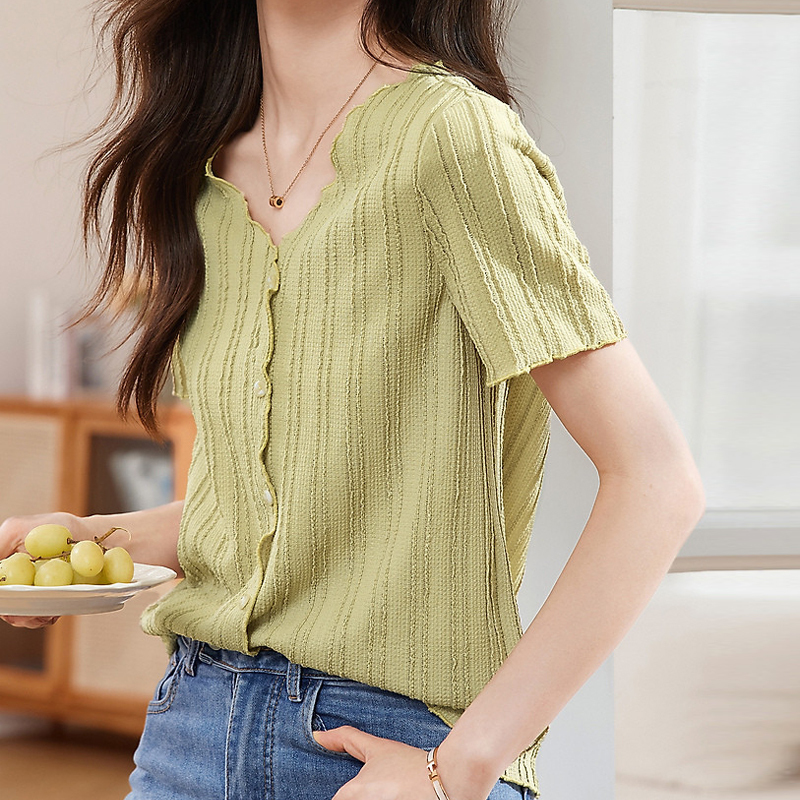 Summer new style texture V-neck yellow green short-sleeved shirt