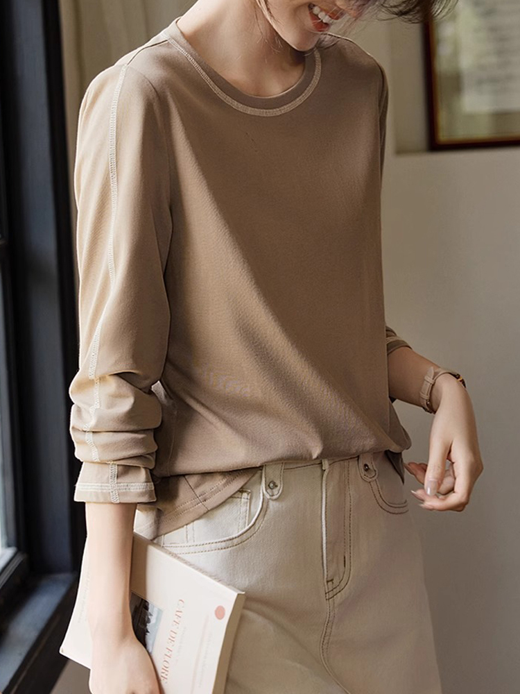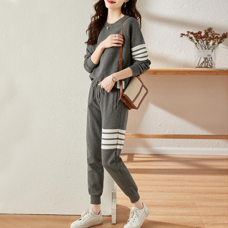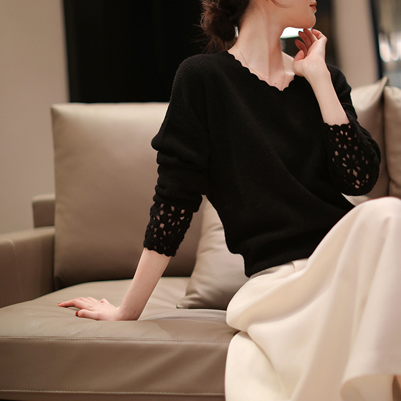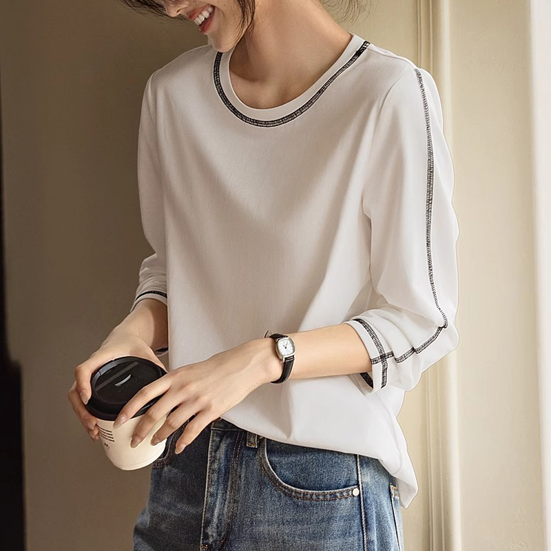 Black and white irregular hem and contrasting color slim-fitting sleeve women's sweater