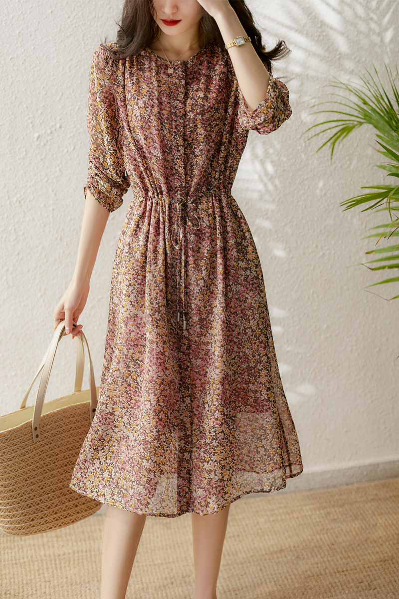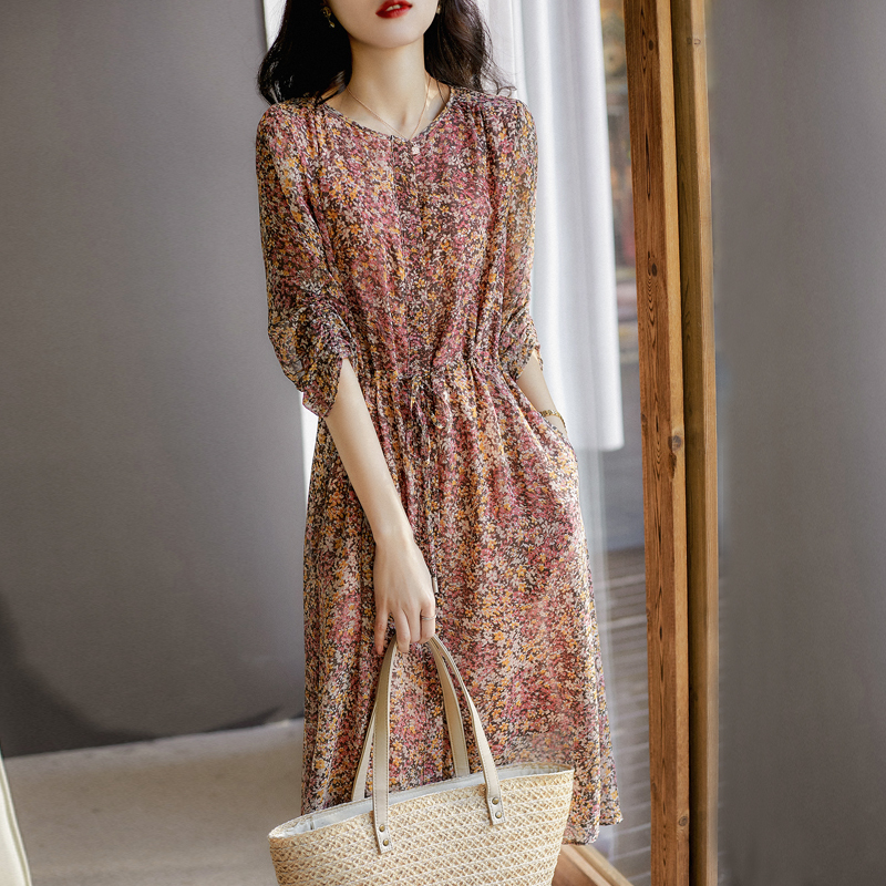 Xiao Xiang style pattern splicing fake two skinny dresses