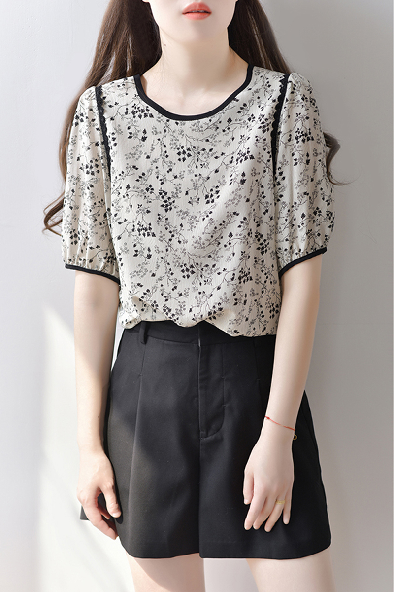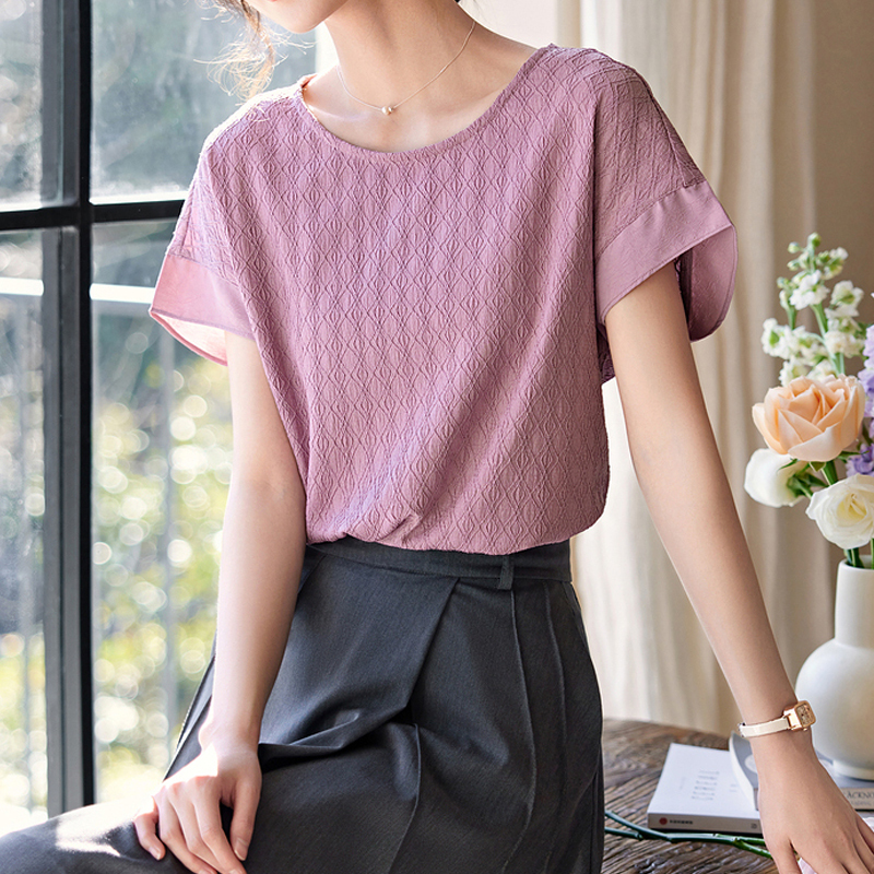 Pink embroidery pattern summer short-sleeved women's t-shirt