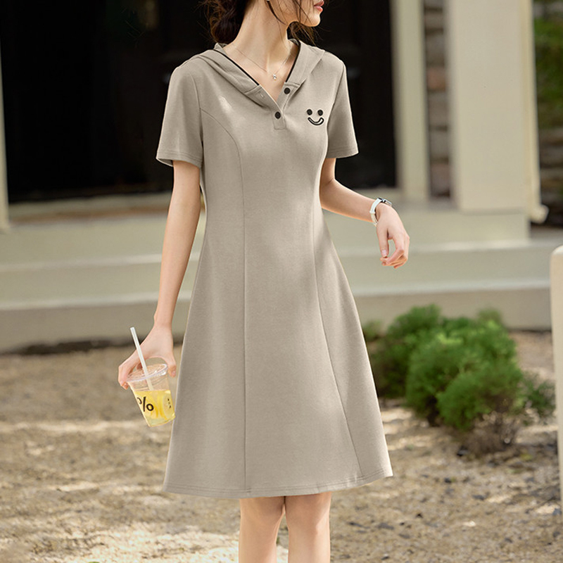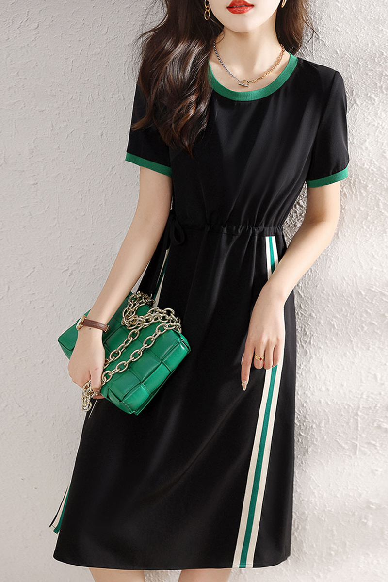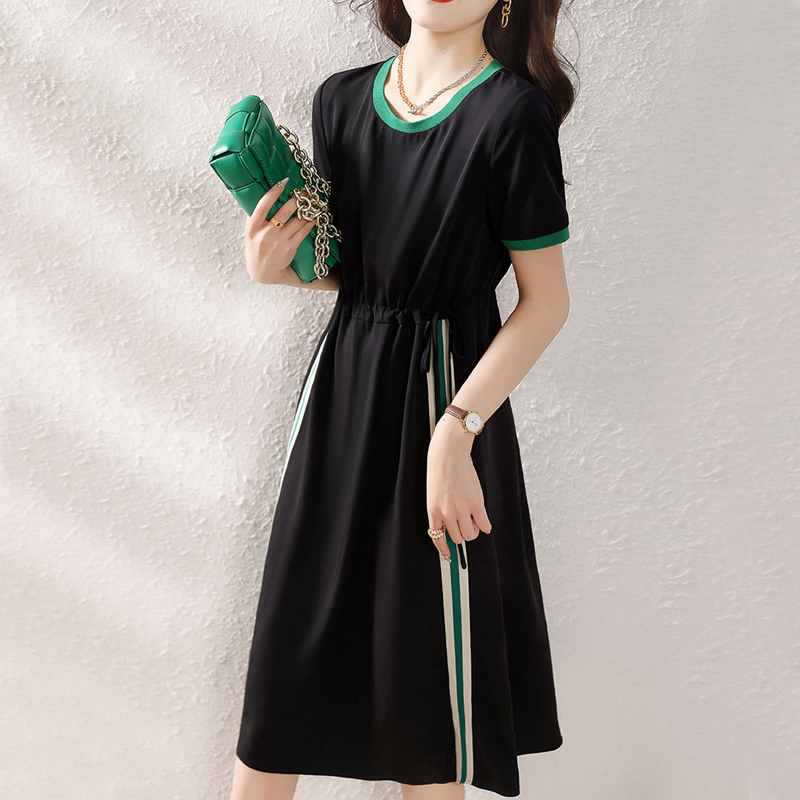 Contrasting color lapel temperament short-sleeved T-shirt skirt dress