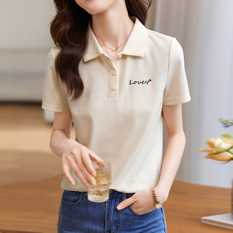 Letters embroidered polo collar casual short-sleeved women's t-shirt