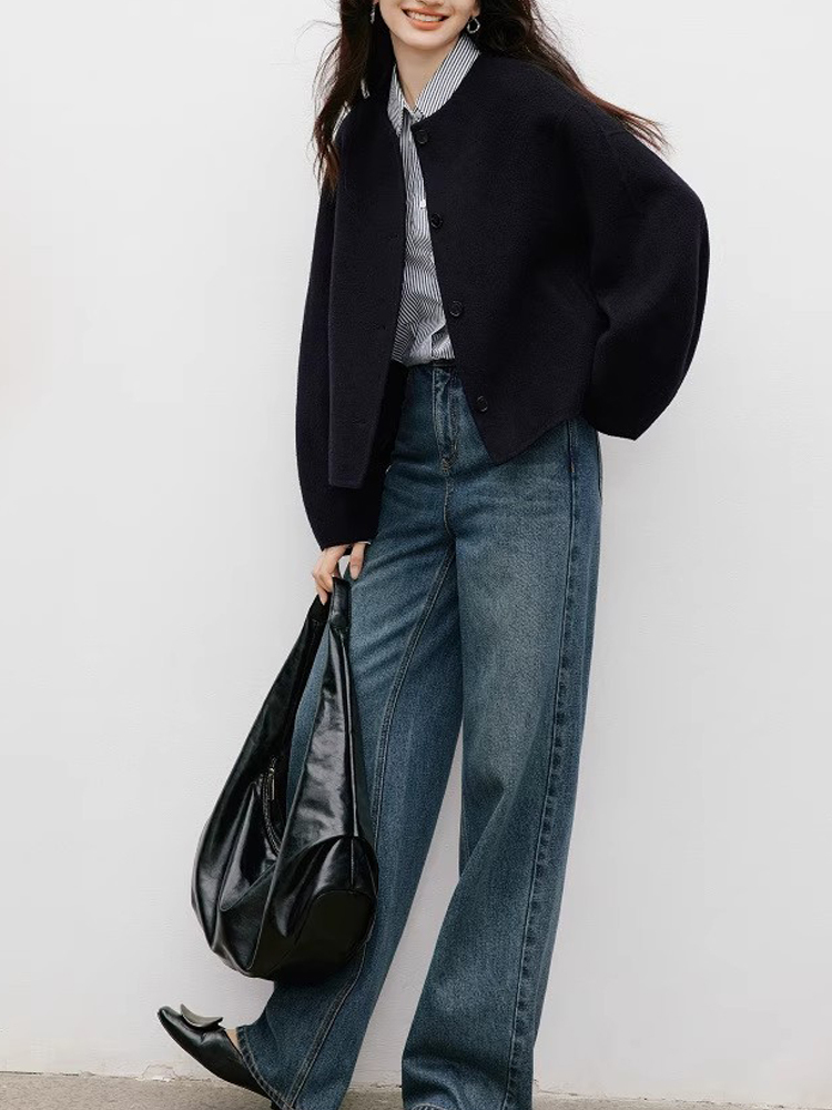 Winter new style commuting simple and elegant short coat with shoulder shoulders