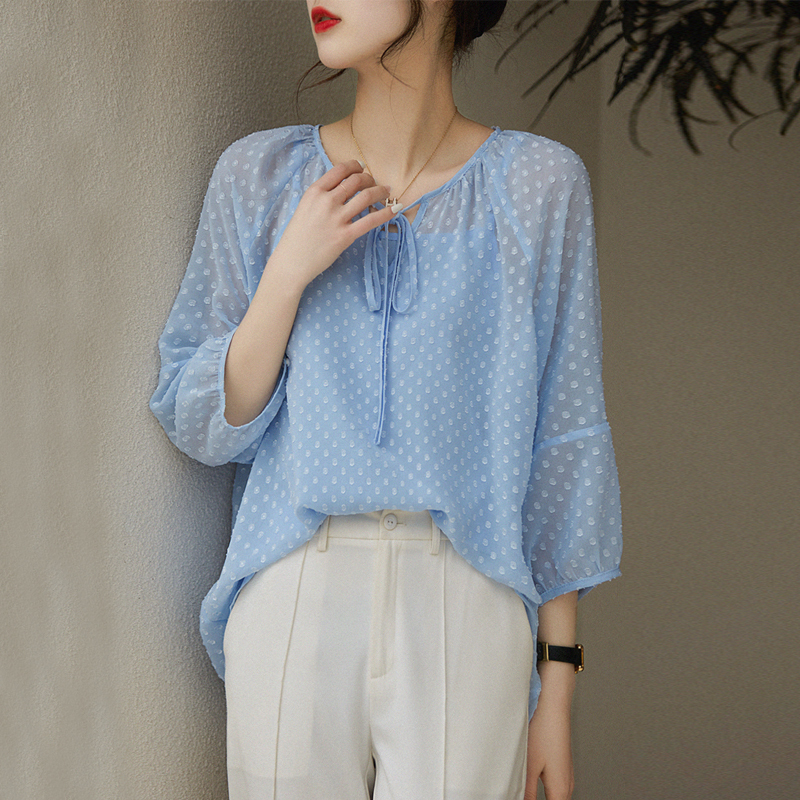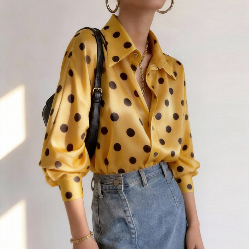 Yellow polka dot New style commuting sleeve women's shirt spring and autumn top