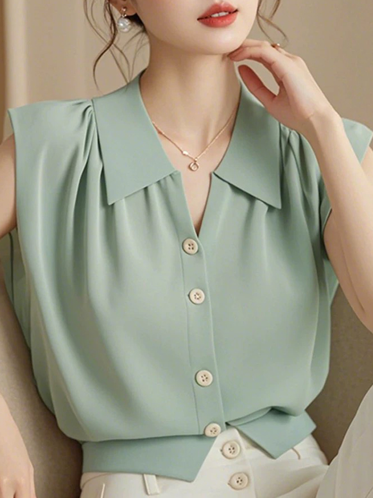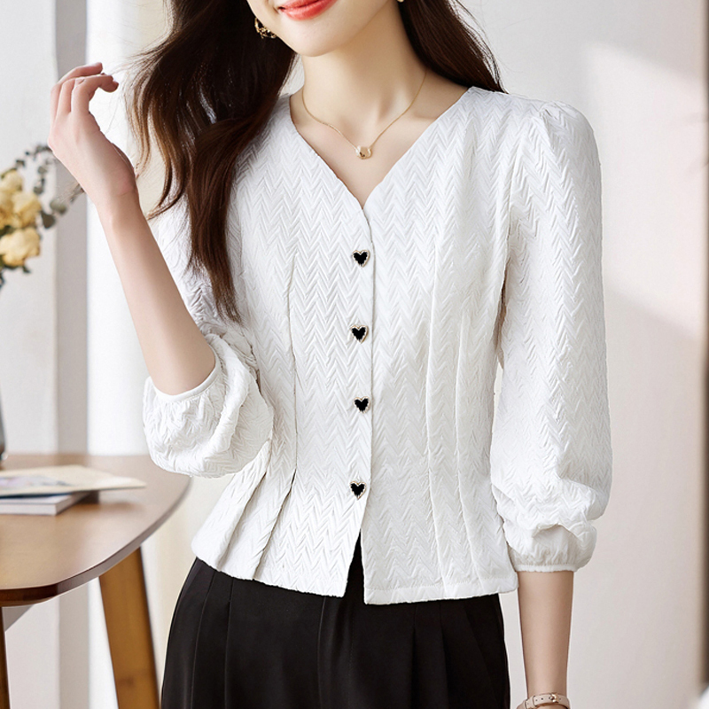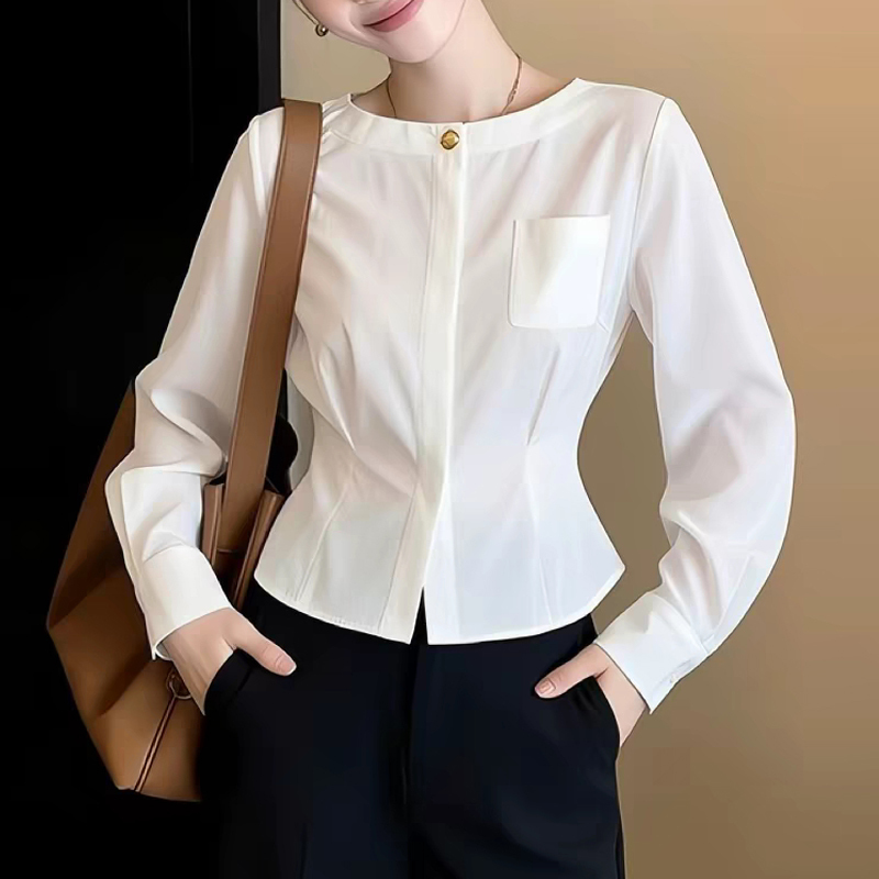 Temperament short waist waist white solid color commuting sleeve women's shirt