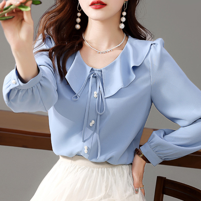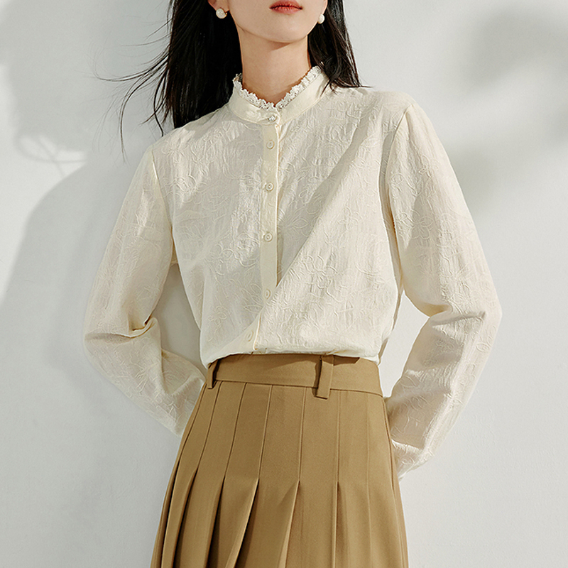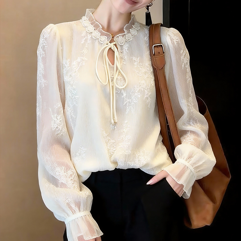 French age-reducing lace small stand collar pullover rice apricot sleeve women's shirt