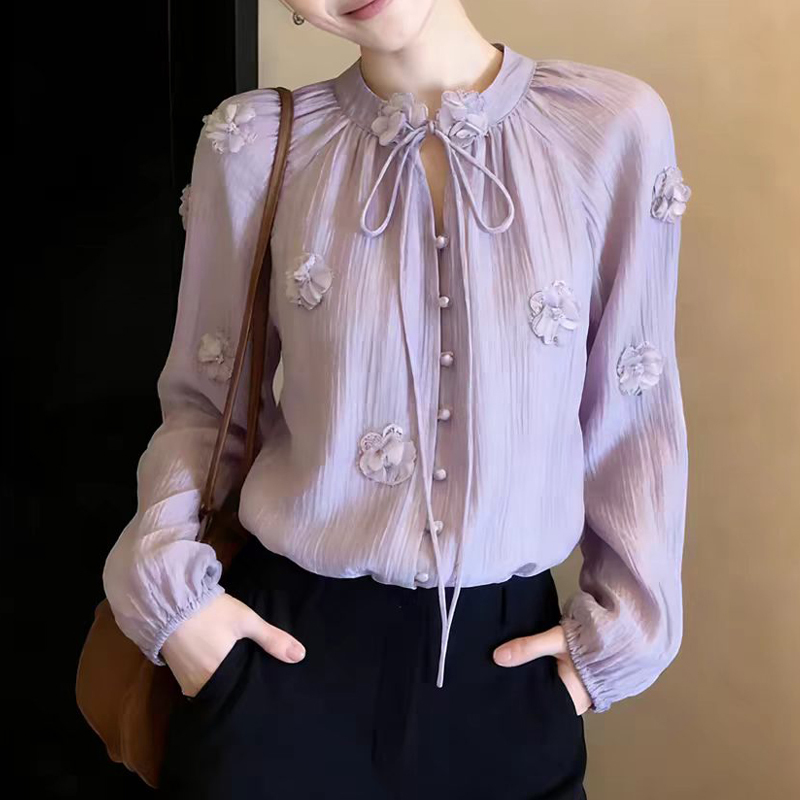 Design, light and luxurious, white new style sleeve shirt with silk ribbons