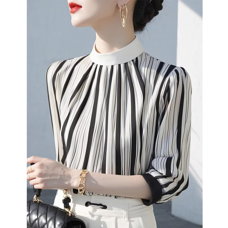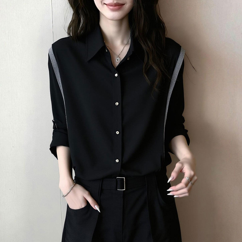 Simple contrasting color texture black commuting new style women's shirt with sleeves