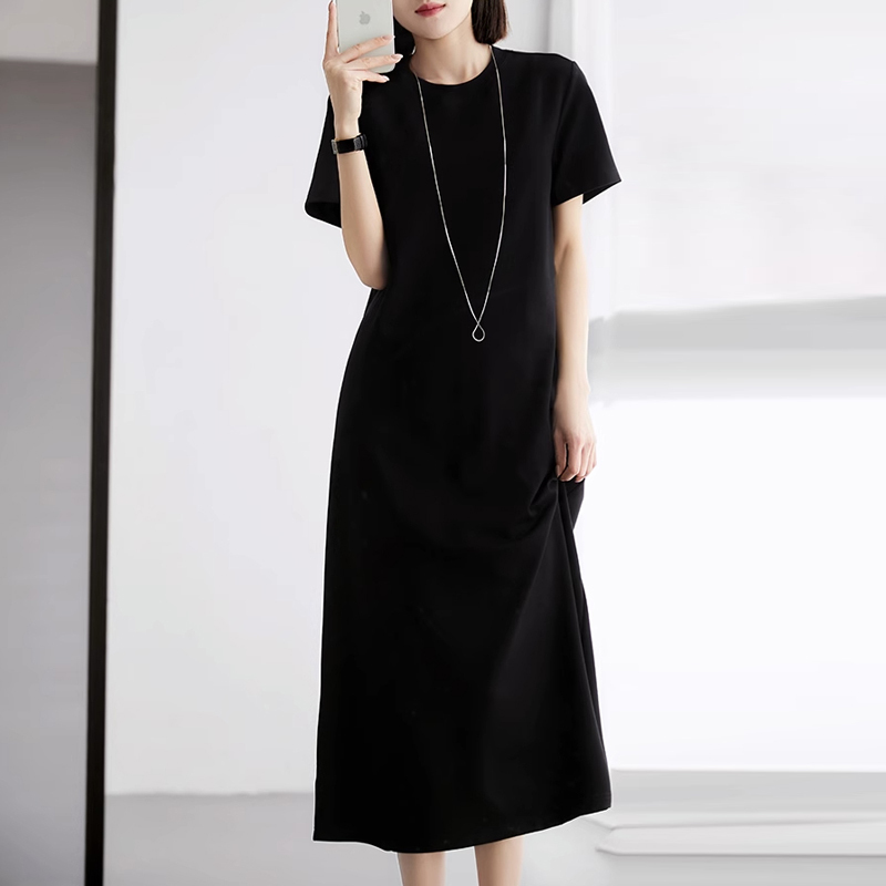 Simple medium-and long-style short-sleeved women's t-shirt dress