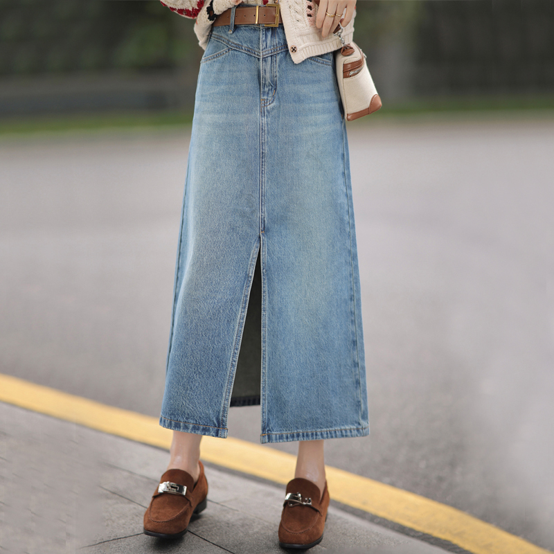 Temperament wrinkle-resistant medium-and long-style thin split half skirt
