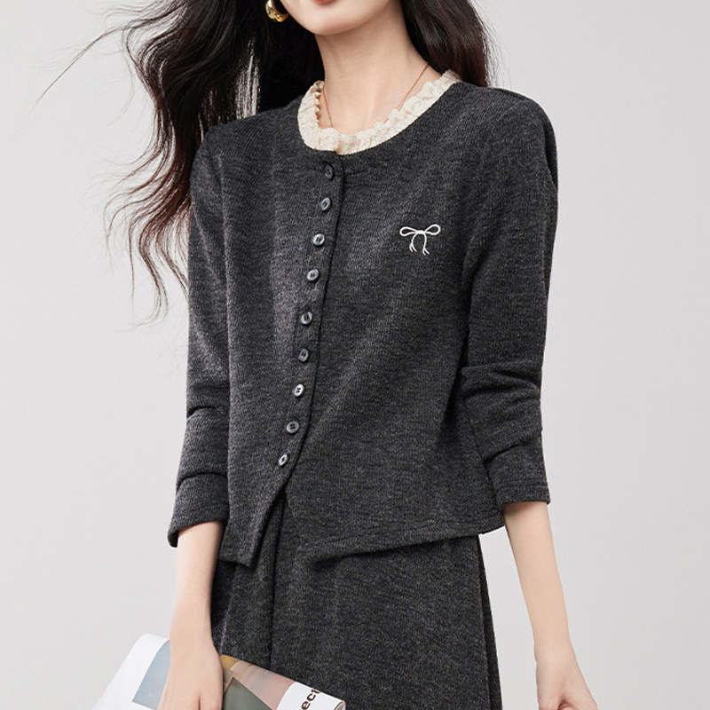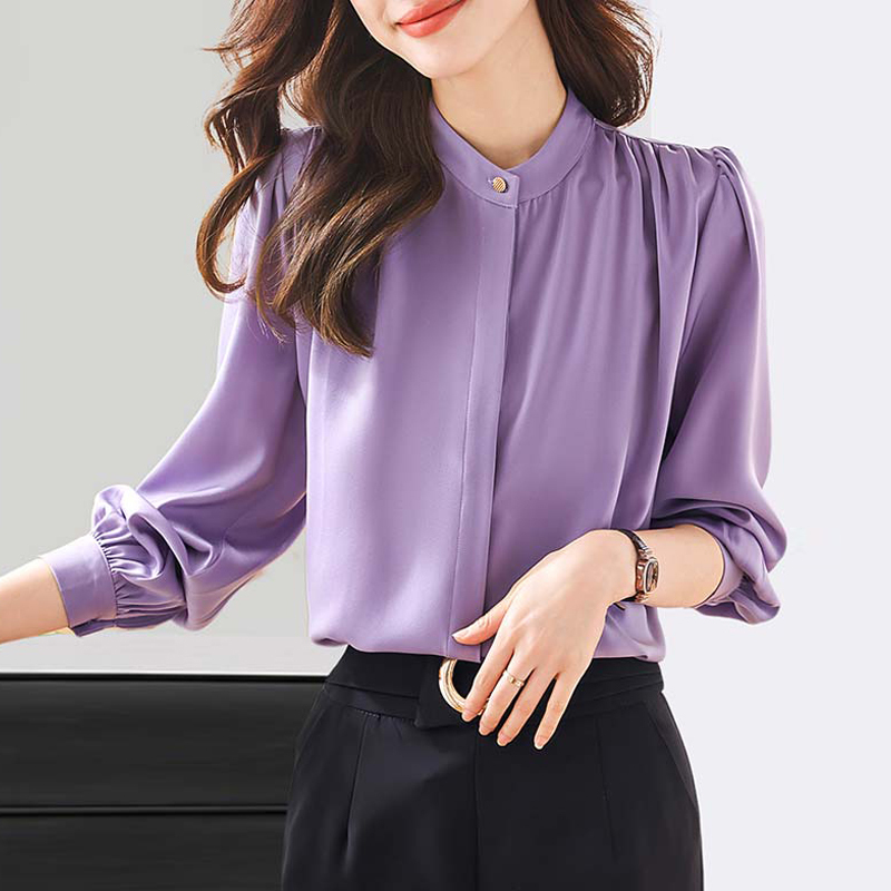 Autumn and winter dark gray half-high collar button design pullover sleeve blouse