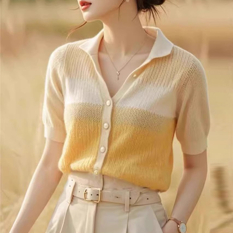 Cole-matching age-reducing youth short-sleeved women's sweater top