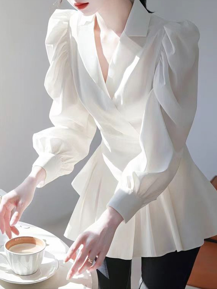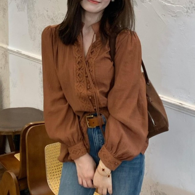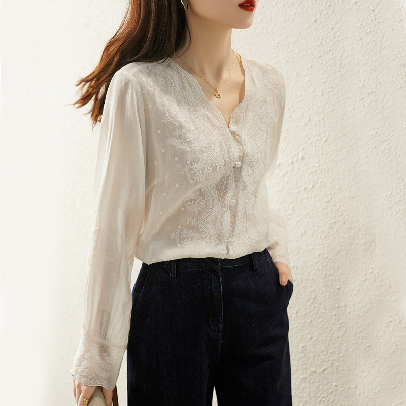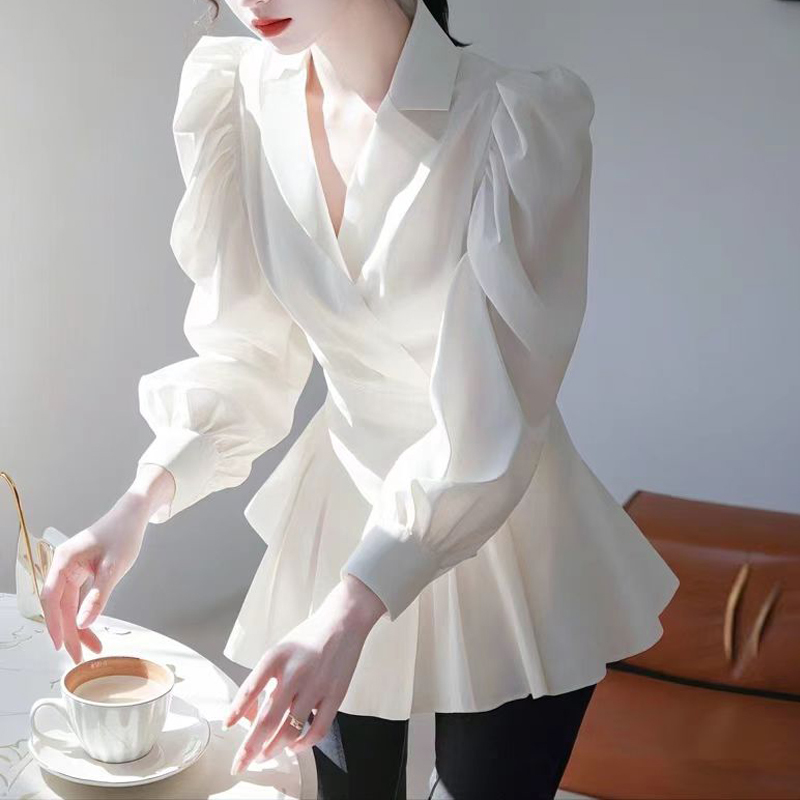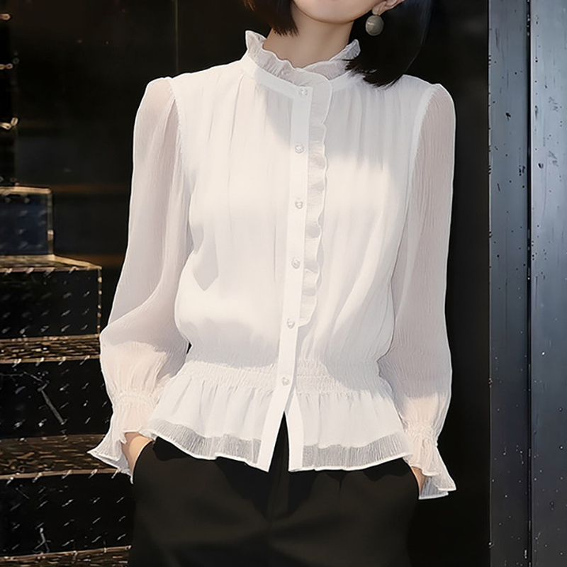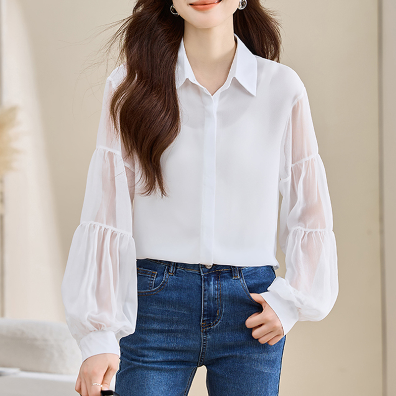 White elegant lace collar, light luxury new style women's shirt with sleeves