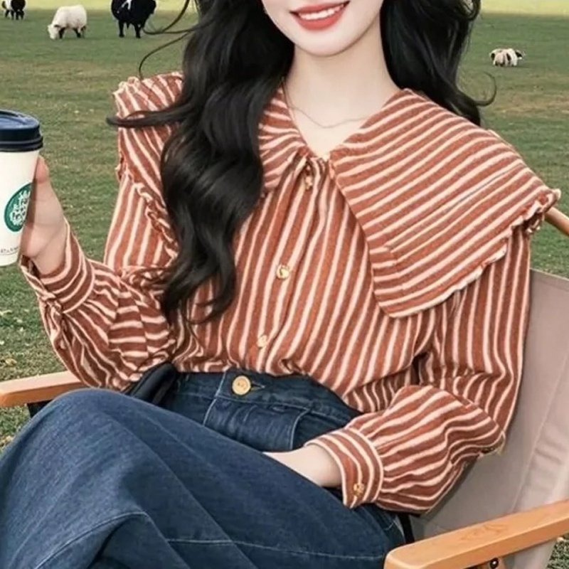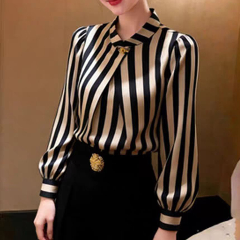 Temperament commuting design vertical stripe spring and autumn sleeve women's shirt