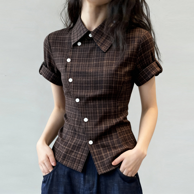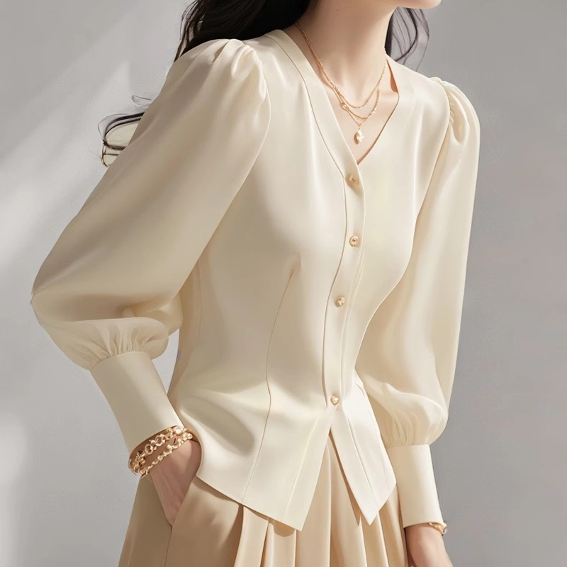 Elegant short rice apricot waist waist new sleeve women's shirt