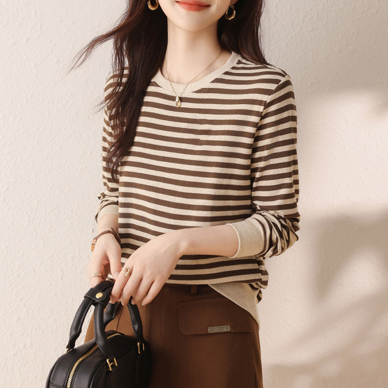 Coffee color classic stripe new style sleeve women's T-shirt top
