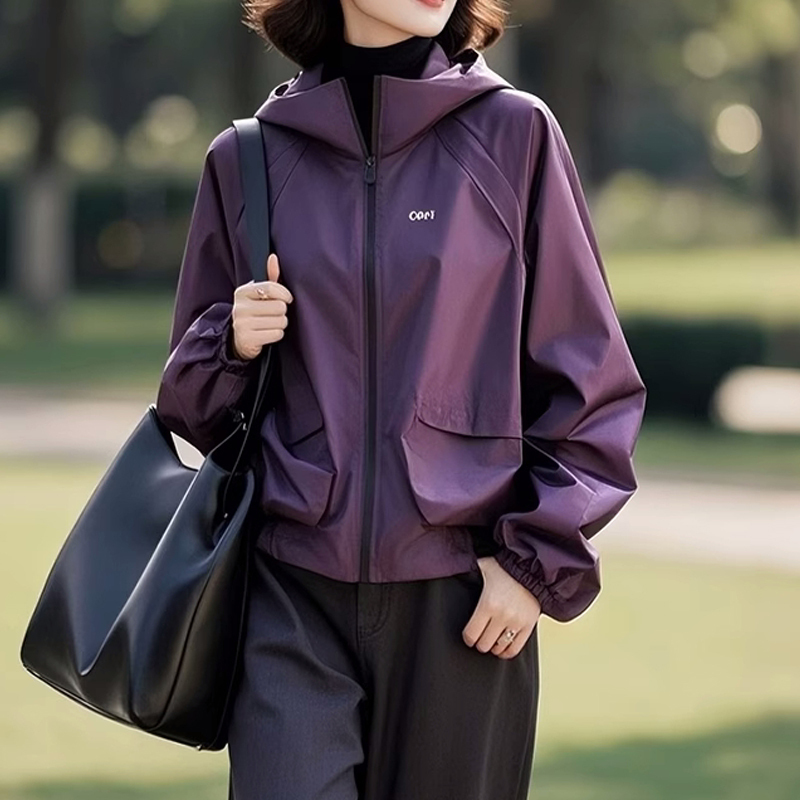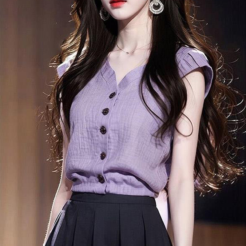 Temperament V-neck summer new purple short-sleeved women's shirt